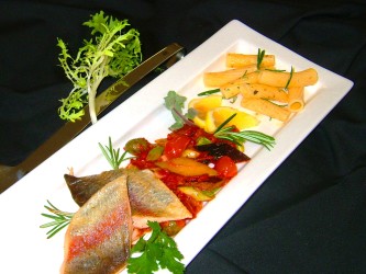 Wer keinen Fisch mag, kann von dem Pfannengemüse einfach mehr nehmen,